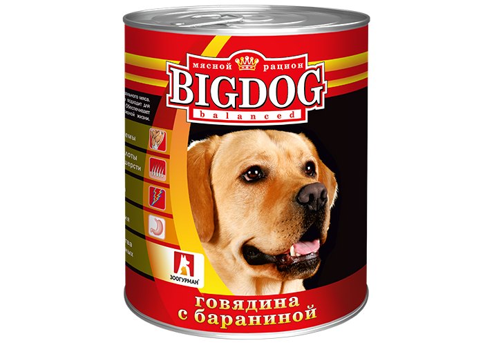 Зоогурман Big Dog Влажный корм Консервы для собак Говядина с бараниной (цена за упаковку) 850г х 6шт
