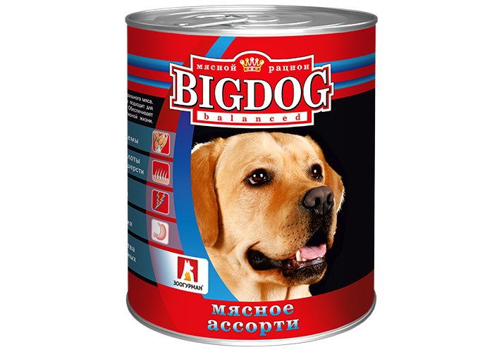 Зоогурман Big Dog Влажный корм Консервы для собак Мясное ассорти (цена за упаковку) 850г х 6шт