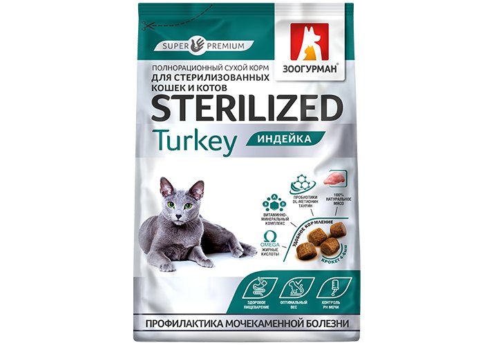 Зоогурман Sterilized Сухой корм для Стерилизованных кошек Индейка 350 г