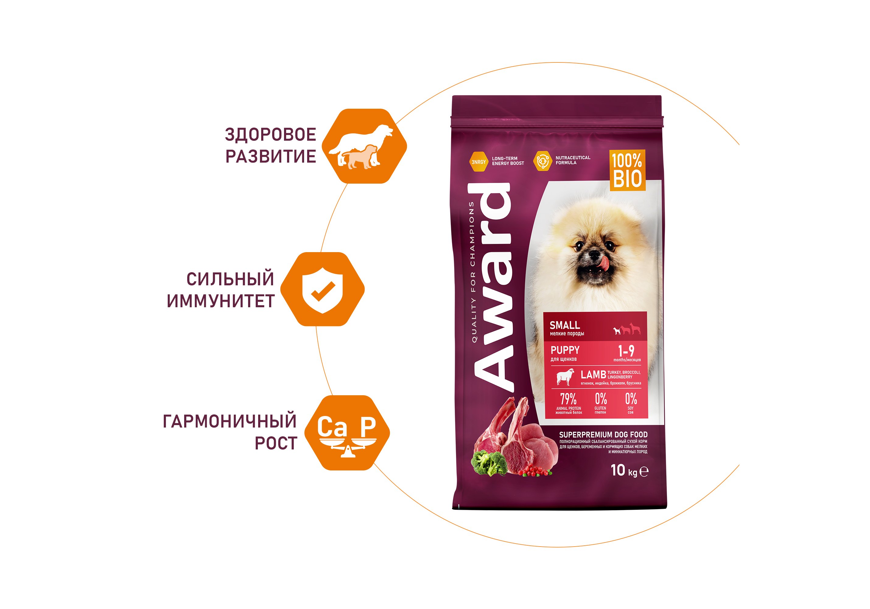 Award Puppy Small Сухой корм Авард для Щенков от 1 месяца, беременных и кормящих собак Мелких и миниатюрных пород Ягненок индейка брокколи брусника 10 кг