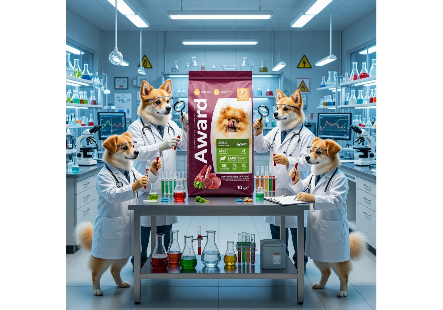 Наши тесты показали: питомцы едят AWARD с удовольствием и просят добавки. В составе нет ингредиентов, которые могут негативно повлиять на здоровье питомцев: сои, глютена и ГМО.