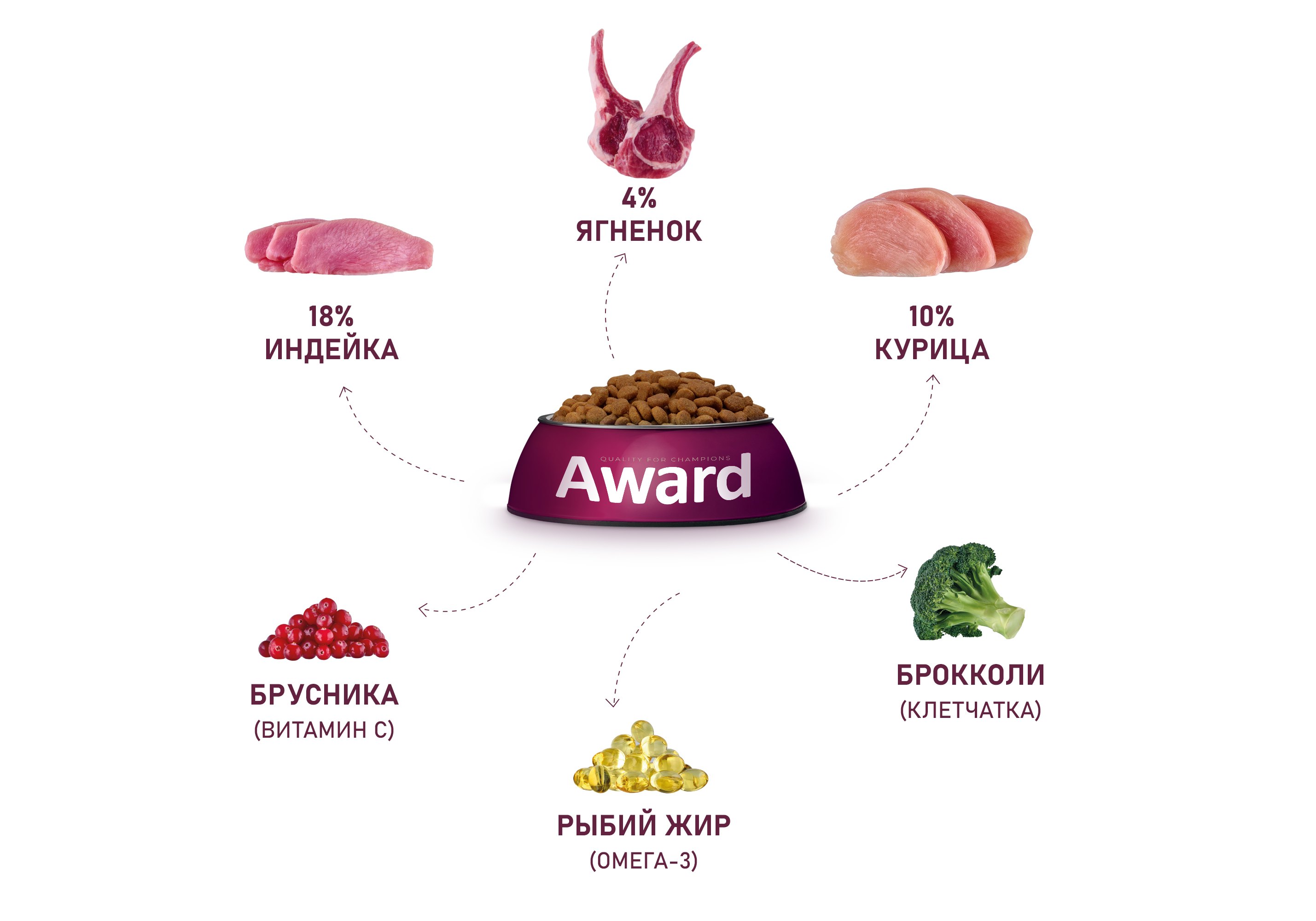 Корма AWARD созданы, чтобы просто и правильно заботиться о здоровье и долголетии своего питомца, взамен получая радость от времени, проведенного вместе. Мы считаем каждого питомца чемпионом и поводом для гордости!