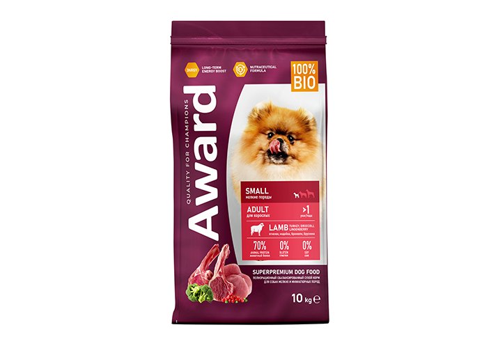 Award Small Adult Сухой корм Авард для взрослых собак Мелких и Миниатюрных пород Ягненок индейка брокколи брусника 10 кг