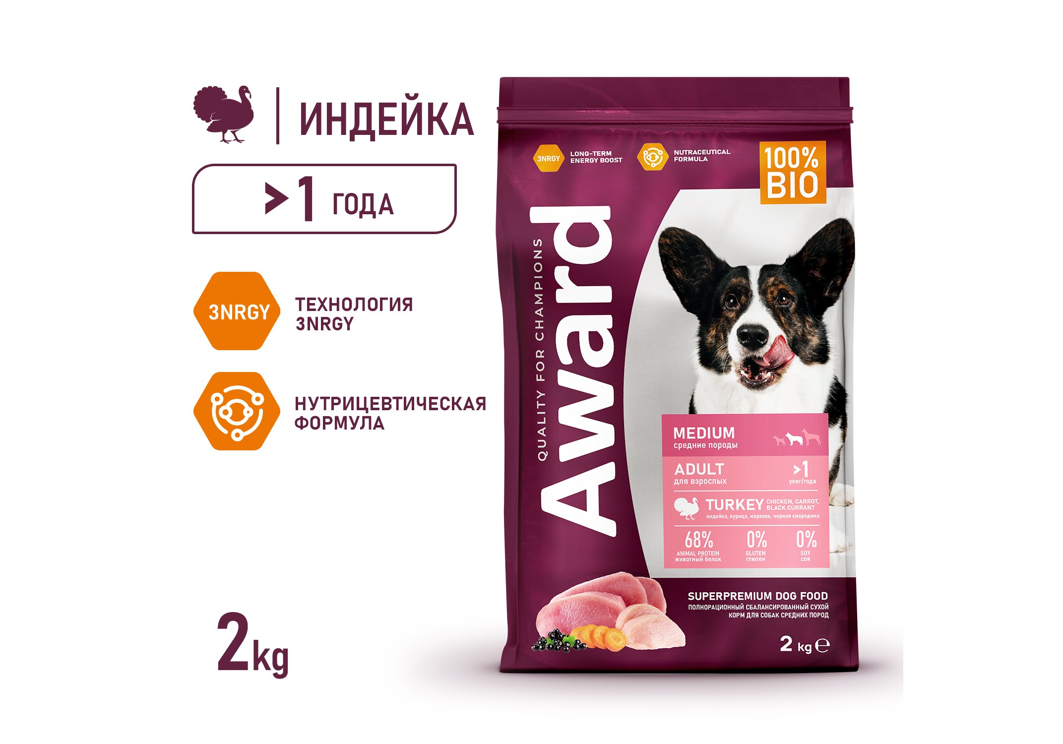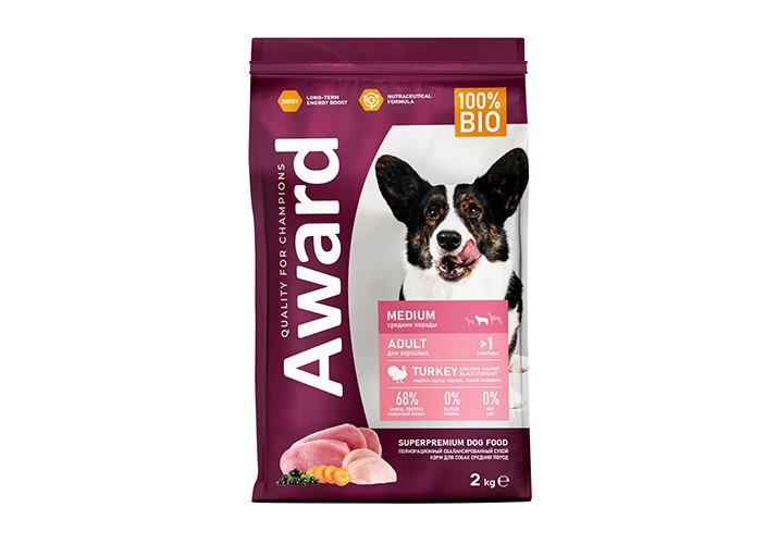 Award Medium Adult Сухой корм Авард для взрослых собак Средних пород Индейка курица морковь черная смородина 2 кг