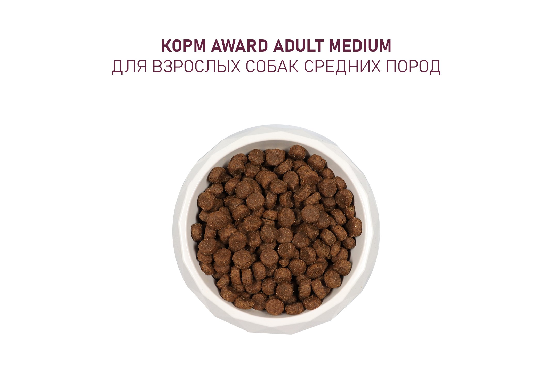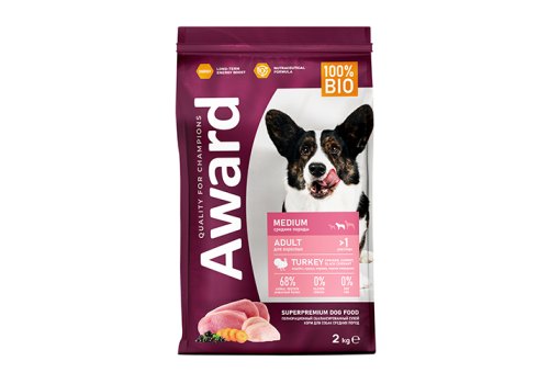 Сухой корм AWARD для взрослых собак средних пород с индейкой и курицей с добавлением моркови и черной смородины 2 кг