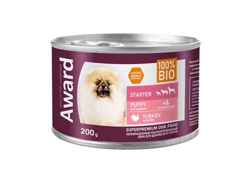 Award Puppy Влажный корм Авард для Щенков с начала прикорма до 4 месяцев, беременных и кормящих собак Паштет из Индейки (цена за упаковку) 200г х 12шт