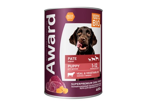 Award Puppy Влажный корм Авард для Щенков от 1 месяца Паштет из Телятины с овощами (цена за упаковку) 400г х 12шт