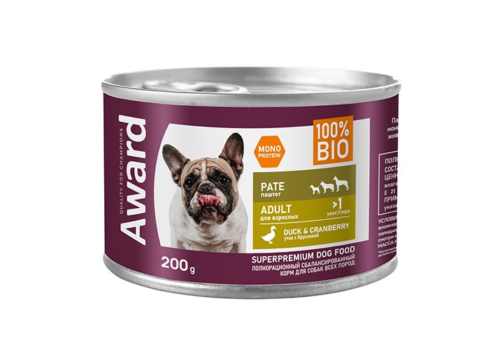 Award Adult Влажный корм Авард для взрослых собак Паштет из Утки с брусникой (цена за упаковку) 200г х 12шт