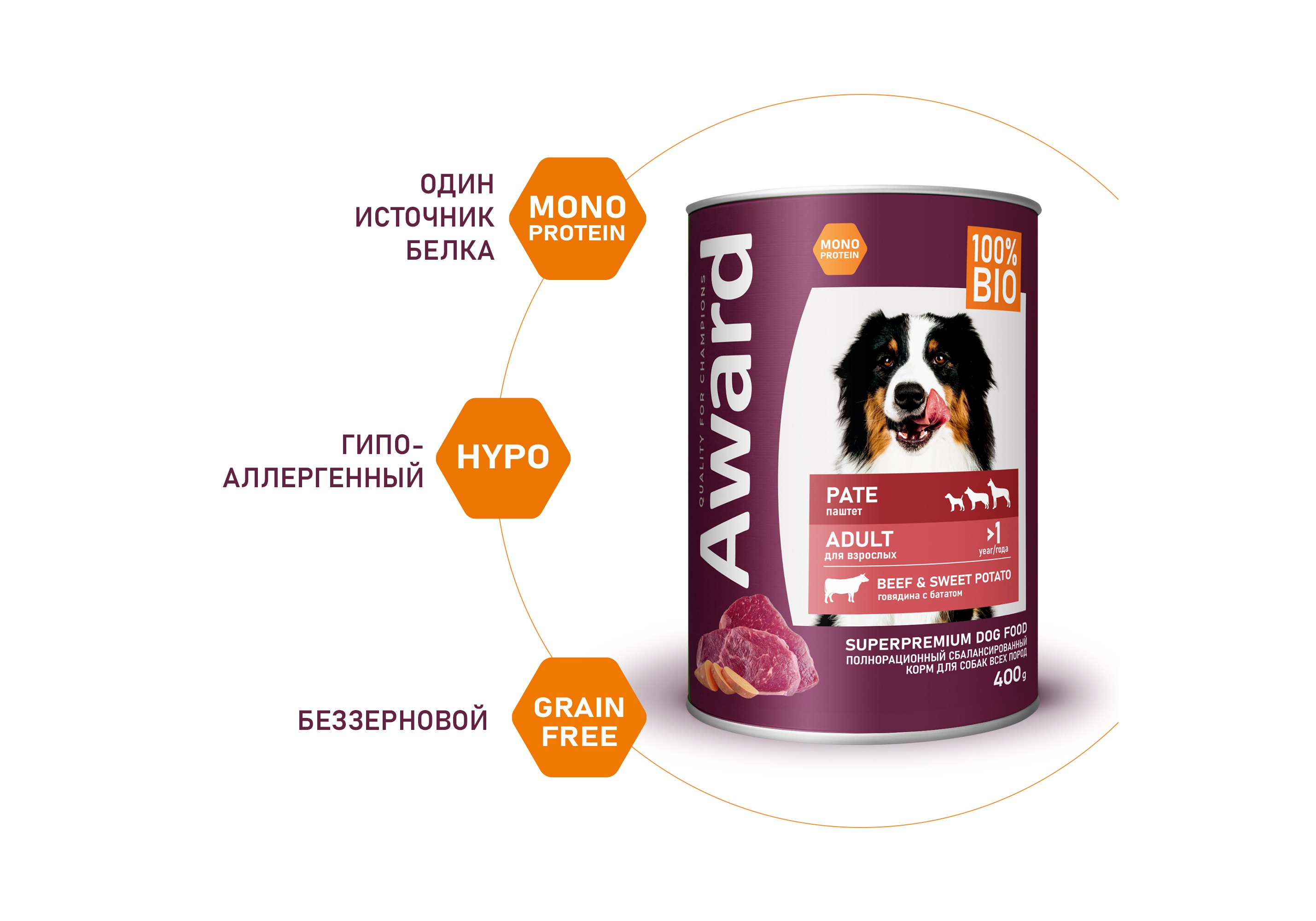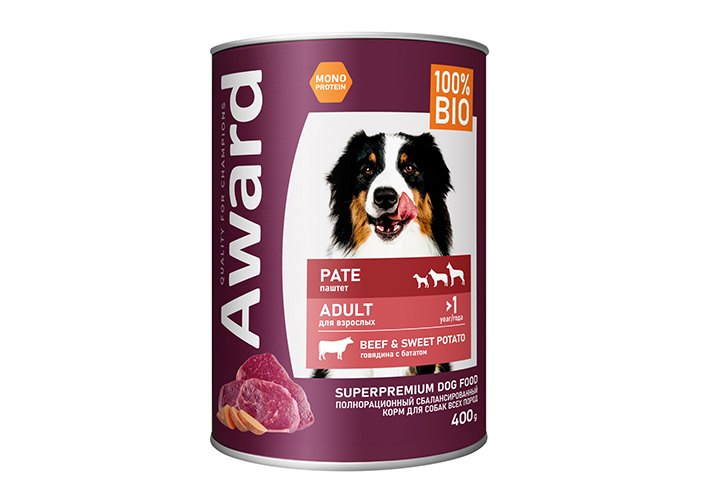 Award Adult Влажный корм Авард для взрослых собак Паштет из говядины с бататом (цена за упаковку) 400г х 12шт