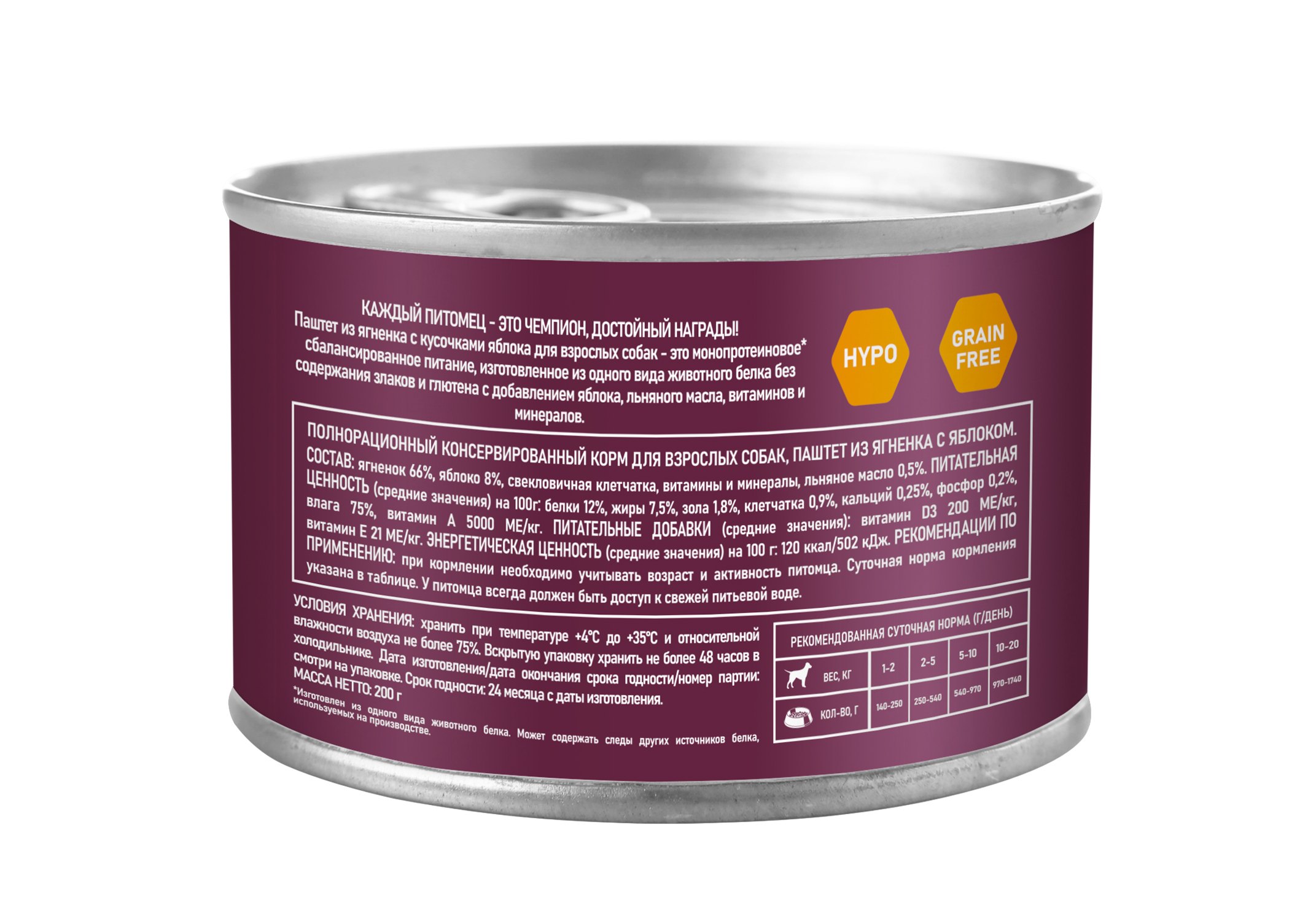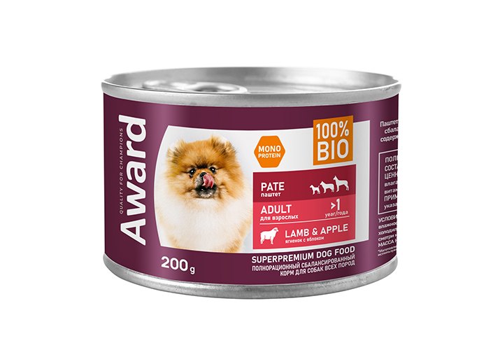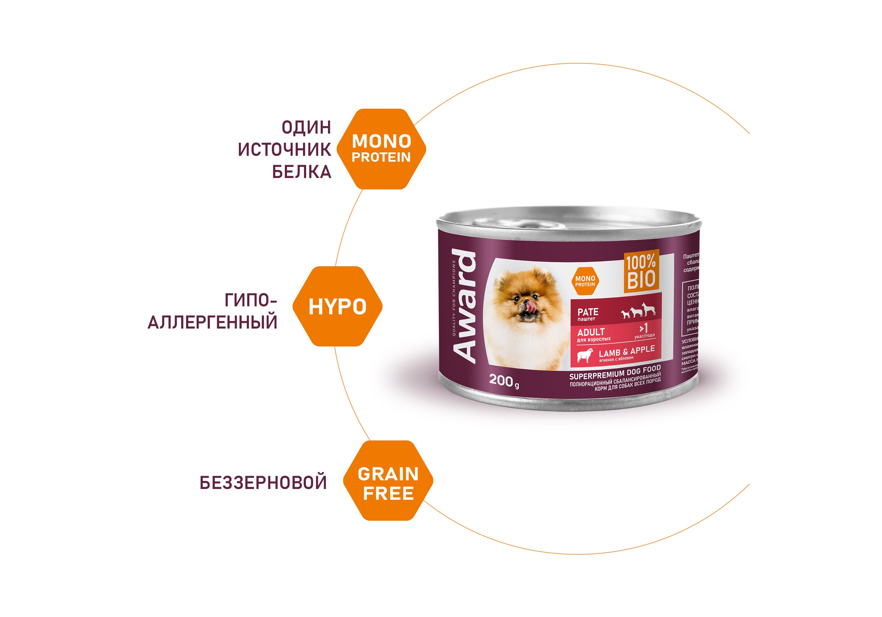 Award Adult Влажный корм Авард для взрослых собак Паштет из ягненка с яблоком (цена за упаковку) 200г х 12шт