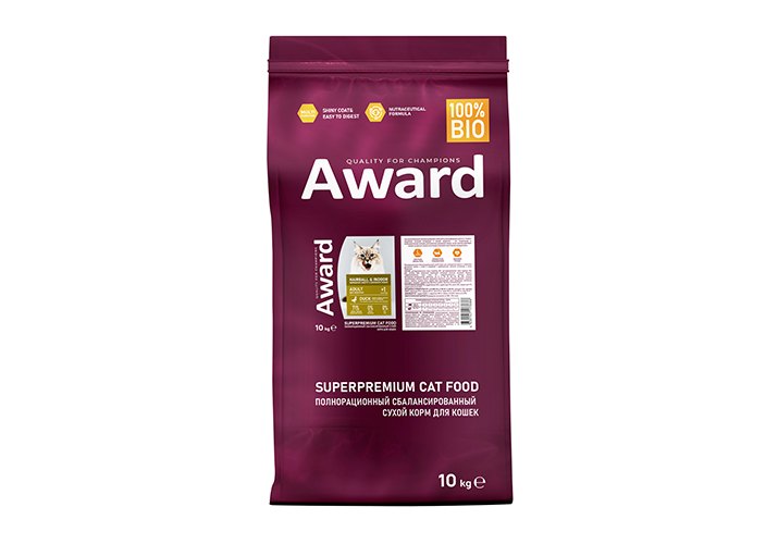 AWARD — это сухие и влажные корма для собак и кошек класса суперпремиум российского производства. Они разработаны профессиональными отечественными диетологами и содержат все необходимое для гармоничного развития питомцев.