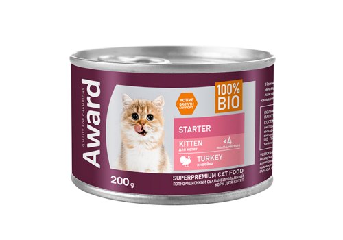 Award Kitten Влажный корм Авард для Котят с начала прикорма до 4 месяцев, беременных и кормящих кошек Паштет из Индейки (цена за упаковку) 200г х 12шт