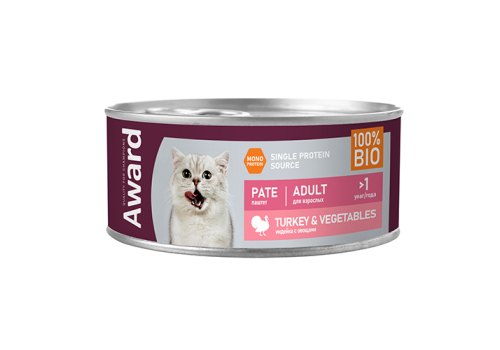 Влажный корм AWARD для взрослых кошек паштет из индейки с овощами 100 г.