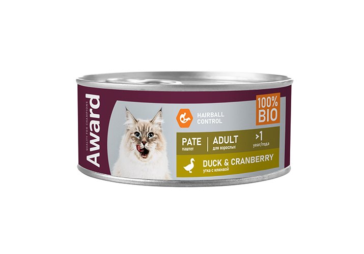 Award Adult Влажный корм Авард для взрослых кошек Паштет из Утки с клюквой (цена за упаковку) 100г х 16шт