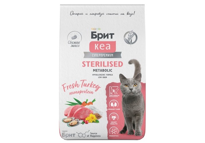 Брит Кеа Sterilised Metabolic Turkey monoprotein Сухой корм для взрослых Стерилизованных кошек Индейка 7 кг