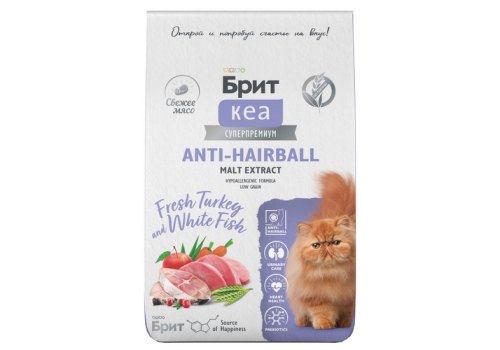 Брит Кеа Anti-Hairball Malt Extract Turkey White Fish Сухой корм для взрослых кошек Выведение шерсти Белая рыба Индейка 7 кг