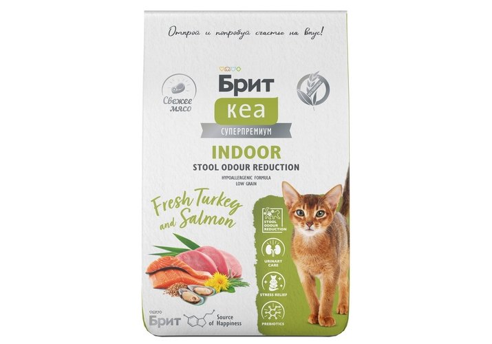 Брит Кеа Indoor Stool Odour Reduction Turkey Salmon Сухой корм для взрослых Домашних кошек Индейка Лосось 7 кг