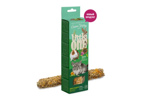 Little One Green Valley Stick Herbs & Flowers Лакомство Литтл Уан для декоративных грызунов Беззерновая палочка с Травами и Цветами 160 г