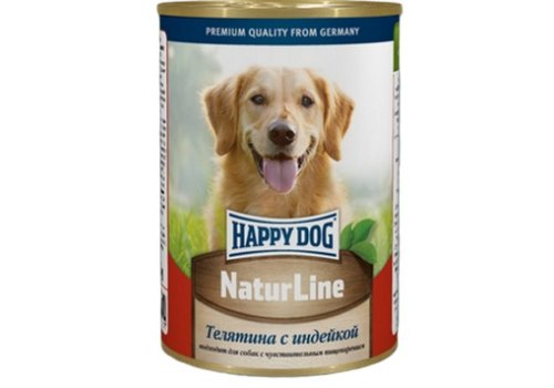 Happy Dog NaturLine Консервы Хэппи Дог для собак Телятина с индейкой (цена за упаковку, Россия) 410г х 12шт