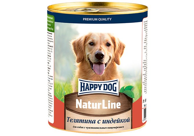 Happy Dog NaturLine Консервы Хэппи Дог для собак Телятина с индейкой (цена за упаковку, Россия) 970г х 6шт