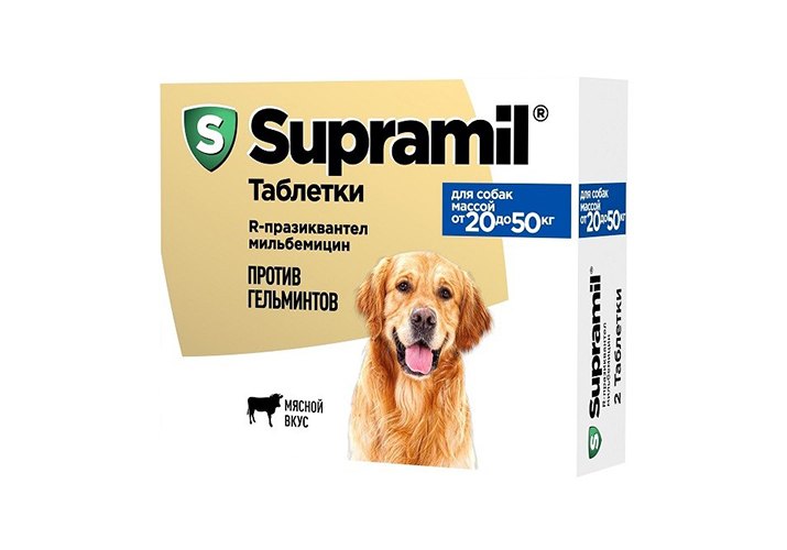 Supramil Таблетки Супрамил против гельминтов с мясным вкусом для собак весом от 20 до 50 кг 1 х 2 таб