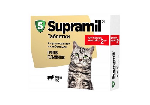 Supramil Таблетки Супрамил против гельминтов с мясным вкусом для кошек весом от 2 кг 1 х 2 таб