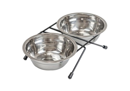 Homepet Миска Хоумпет для домашних животных Металлическая двойная на подставке D 14 см 2 х 0,35 л