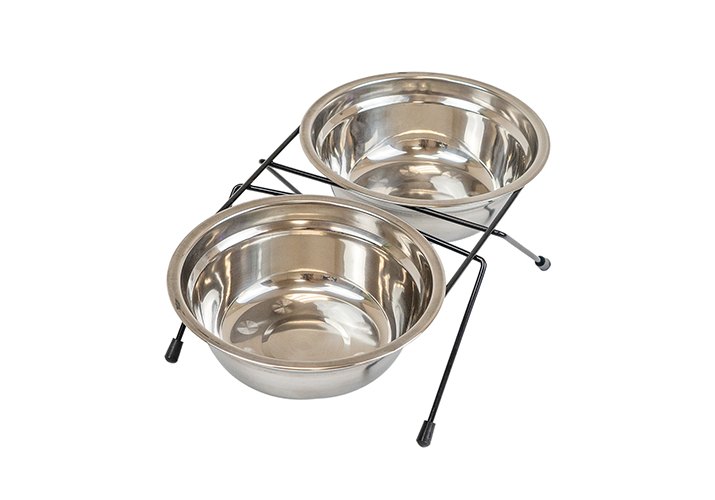 Homepet Миска Хоумпет для домашних животных Металлическая двойная на подставке D 18 см 2 х 0,7 л