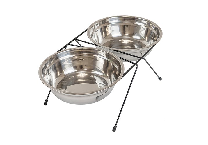Homepet Миска Хоумпет для домашних животных Металлическая двойная на подставке D 26 см 2 х 2,5 л