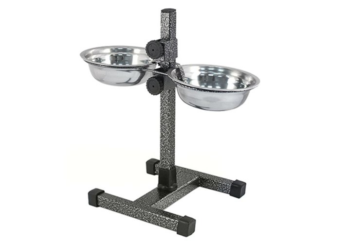 Homepet Металлическая регулируемая подставка Хоумпет с мисками для домашних животных высотой до 30 см Шагрень D 16 см 2 х 0,5 л