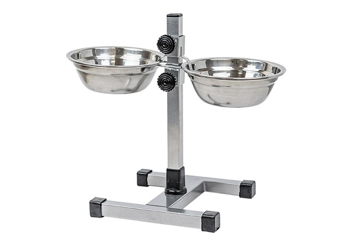 Homepet Металлическая регулируемая подставка Хоумпет с мисками для домашних животных высотой до 30 см Хром D 16 см 2 х 0,5 л