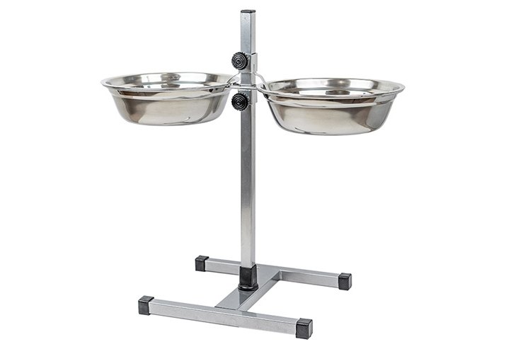 Homepet Металлическая регулируемая подставка Хоумпет с мисками для домашних животных высотой до 50 см Хром D 24 см 2 х 2 л