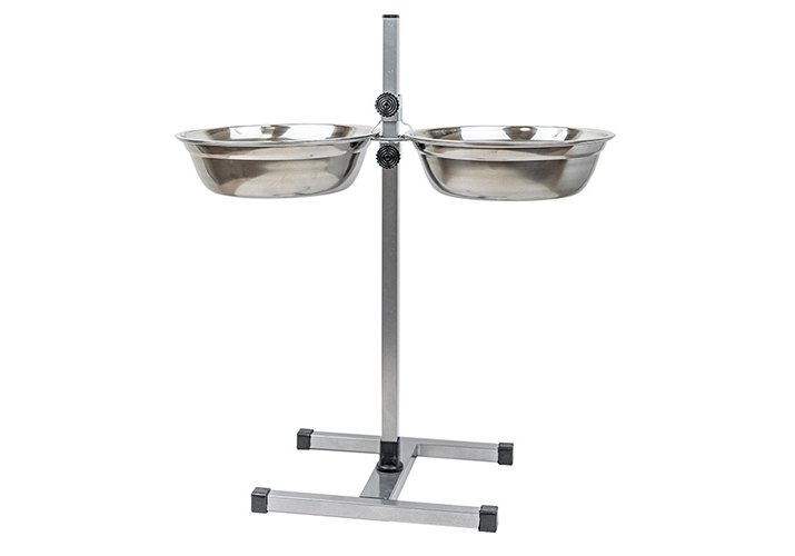 Homepet Металлическая регулируемая подставка Хоумпет с мисками для домашних животных высотой до 60 см Хром D 26 см 2 х 2,5 л