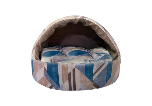Homepet Домик эстрада Хоумпет для домашних животных Велюр Графика Бежево-голубой 38 х 35 х 27 см
