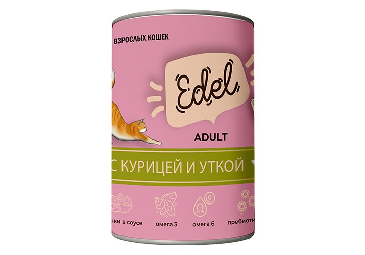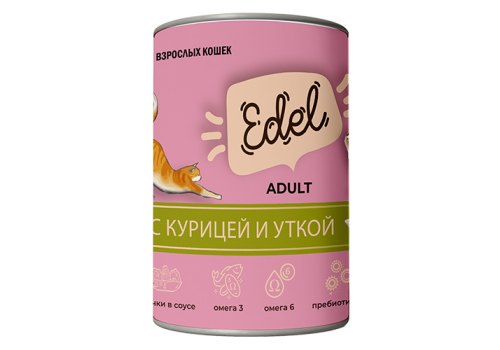 Edel Adult Влажный корм Консервы Эдель для взрослых кошек Кусочки в соусе с Курицей и уткой (цена за упаковку) 400г х 12шт