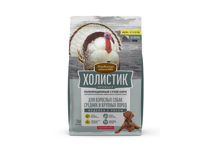 Деревенские лакомства Холистик Премьер Сухой корм для взрослых собак Средних и Крупных пород Индейка с рисом 7 кг