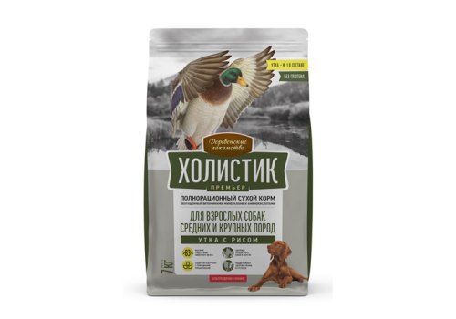 Деревенские лакомства Холистик Премьер Сухой корм для взрослых собак Средних и Крупных пород Утка с рисом 7 кг