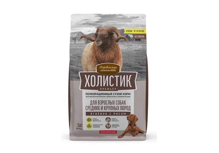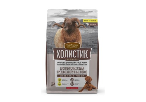Деревенские лакомства Холистик Премьер Сухой корм для взрослых собак Средних и Крупных пород Ягненок с рисом 7 кг