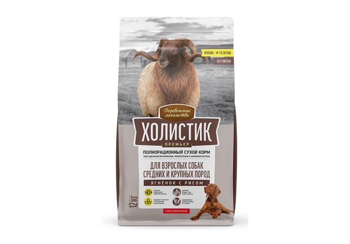 Деревенские лакомства Холистик Премьер Сухой корм для взрослых собак Средних и Крупных пород Ягненок с рисом 12 кг