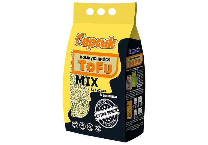 Барсик Tofu Mix Наполнитель для кошачьего туалета Кукуруза бентонит комкующийся 4,54 л