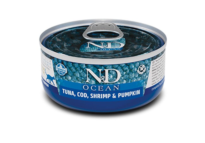 Farmina N&D Ocean Tuna Cod Shrimp & Pumpkin Консервы Фармина для кошек Тунец Треска Креветки и Тыква (цена за упаковку) 70г х 30шт