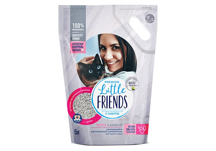 Little Friends Tofu Carbon Наполнитель Литтл Френдз для кошачьего туалета Комкующийся растительный с Углем 5 л (2,5 кг)