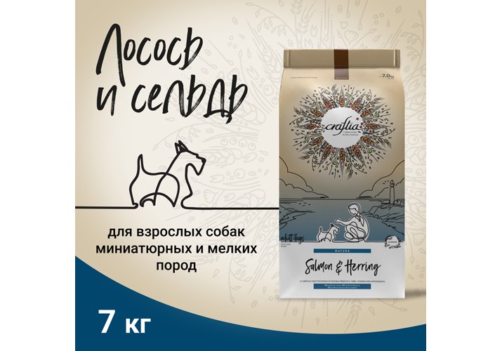 CRAFTIA NATURA сухой корм для взрослых собак миниатюрных и мелких пород из лосося с сельдью