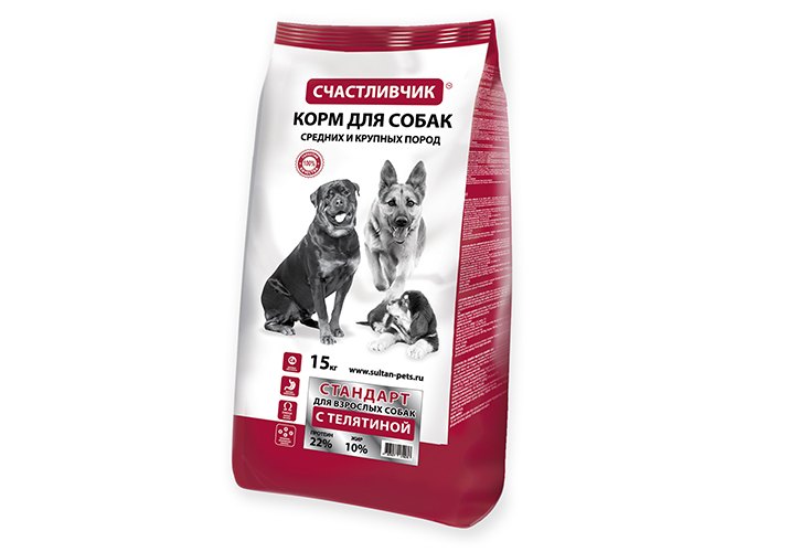 Счастливчик Стандарт Сухой корм для взрослых собак Средних и Крупных пород с Телятиной 15 кг
