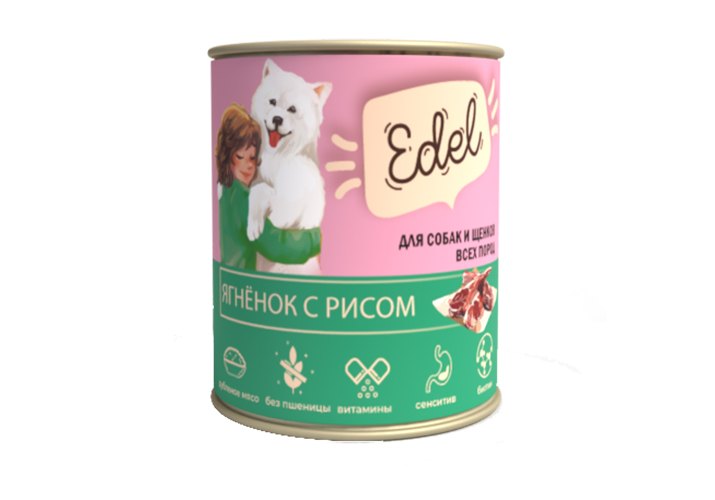 Edel Влажный корм Консервы Эдель для Щенков и собак всех пород Ягненок с рисом (цена за упаковку) 850г х 6шт