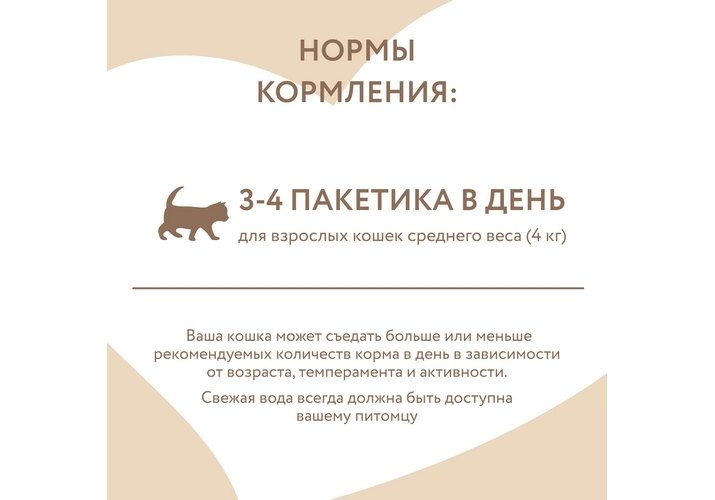 Взрослым кошкам среднего веса (4 кг) с нормальной активностью давать 3-4 упаковки в день.