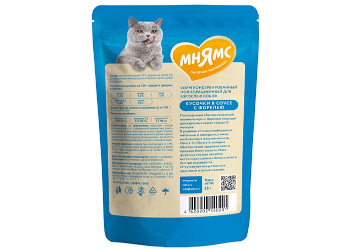 Созданная с учетом физиологических потребностей и вкусовых предпочтений, продукция «Мнямс», несомненно, порадует даже самого избалованного питомца!