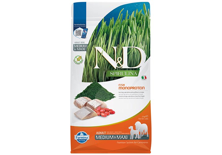 Farmina N&D GF Spirulina Herring & Wolfberry Adult Medium & Maxi Сухой корм Фармина для собак Средних и Крупных пород Сельдь и ягоды годжи 2 кг