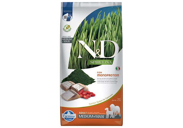 Farmina N&D GF Spirulina Herring & Wolfberry Adult Medium & Maxi Сухой корм Фармина для собак Средних и Крупных пород Сельдь и ягоды годжи 7 кг
