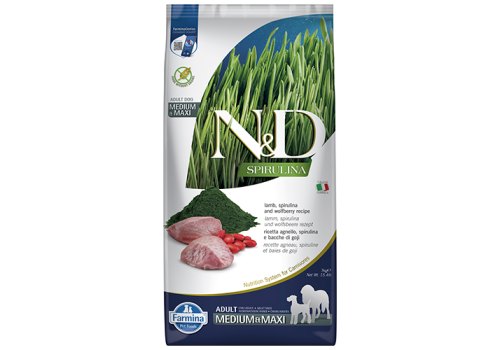 Farmina N&D Spirulina Lamb & Wolfberry Adult Medium & Maxi Сухой корм Фармина для собак Средних и Крупных пород Ягненок и ягоды годжи 7 кг